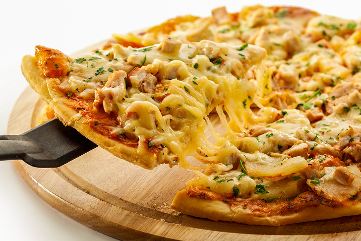2. На пшеничні коржі (піту, тортилью – що вам подобається) намастіть соус барбекю, покладіть моцарелу, червону цибулю і курку. Поставте піцу до мікрохвильової печі на 1 хвилину, щоб сир розплавився. Наріжте на 4 частини і їжте, поки гаряче.