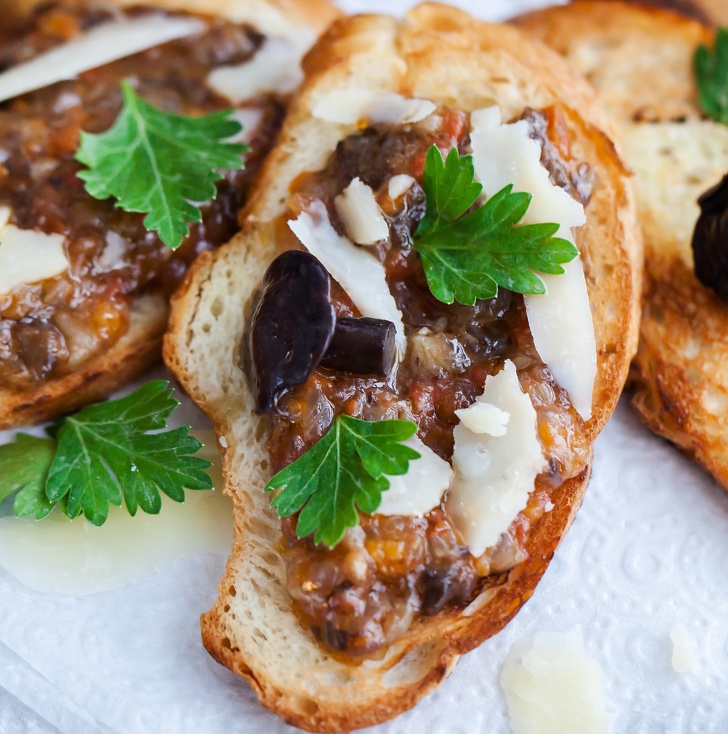 1. Розігріти пательню, обсмажити скибочки хліба протягом 1-2 хвилин до хрусткої скоринки. Нарізати гриби тонкими скибочками і обсмажувати 6-8 хвилин на середньому вогні, помішуючи. Приправити часником і сіллю.
