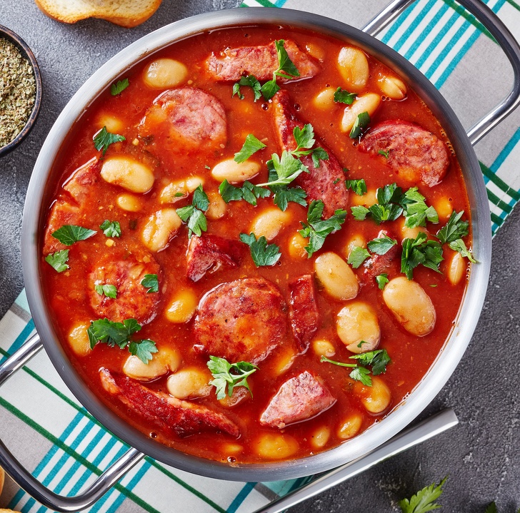 2. Додати квасолю, воду і готувати на повільному вогні ще 5 хвилин.