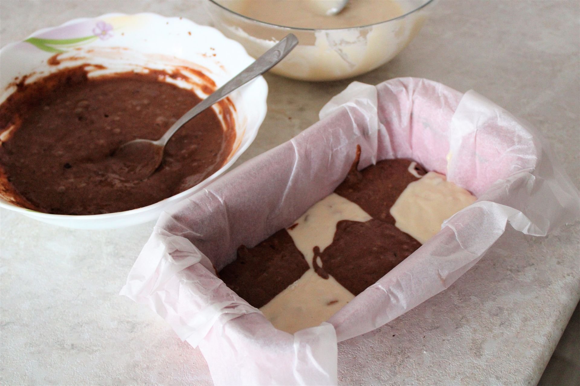 Далі обидва види тіста потрібно добре перемішати і викласти у форму для випікання в хаотичному порядку, як заманеться.