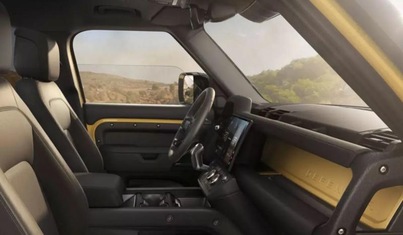 Defender Trophy Edition вирізняється унікальними кольорами кузова: пісочним Sandglow Yellow або класичним зеленим Keswick Green, які вдало поєднуються з чорними глянцевими деталями. У тон оформлені й 20-дюймові колеса, «взутий» у ґрунтову гуму. Салон виконано виключно в чорному кольорі, а на кузові й у салоні розміщені спеціальні шильдики з назвою спецверсії.
