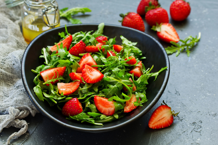 Полуниця — зірка не тільки в солодких стравах. Коли будете смакувати зі сметаною та цукром, залиште трішки ще й для свіжого простого салату.