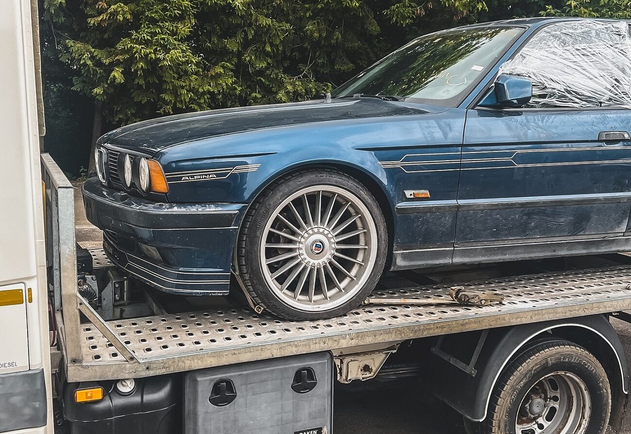В Україні з’явилися дуже рідкісні BMW Alpina. Спортивні седани сфотографували на автовозі в Рівному.