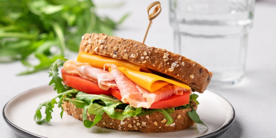 Ви отримаєте енергію з вуглеводів хліба, ситість — із білка шинки, а клітковину — з овочів. Соус додасть ніжності.