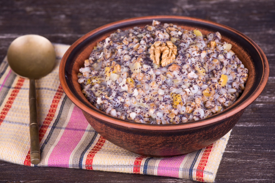 - Пшеницю змішайте з маком, додайте мед, горіхи, халву. Регулюйте кількість меду до смаку.