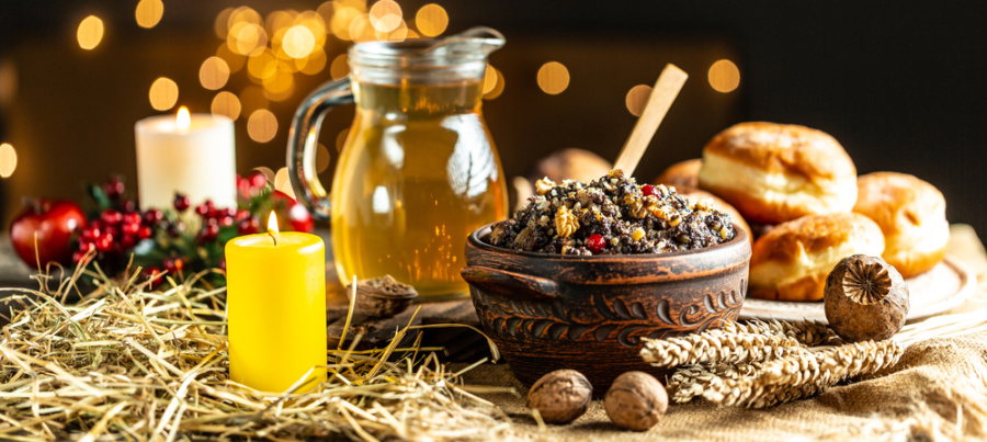 - У переддень Різдва на Святвечір 24 грудня роблять багату кутю з пшеницею, медом, маком, сухофруктами. Ця страва пісна, без масла, бо піст закінчується наступного дня.