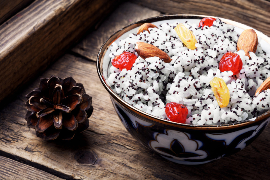 - Змішайте рис, мак, мед, корицю та варення (вишневе, смородинове, порічкове, абрикосове). Перемішайте кутю і подавайте.