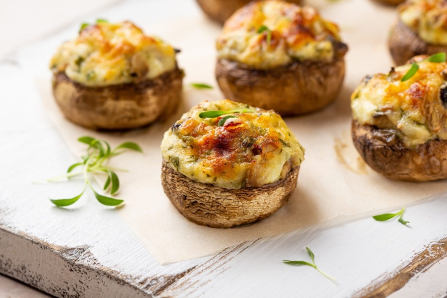 Печериці, фаршировані м’ясом і сиром