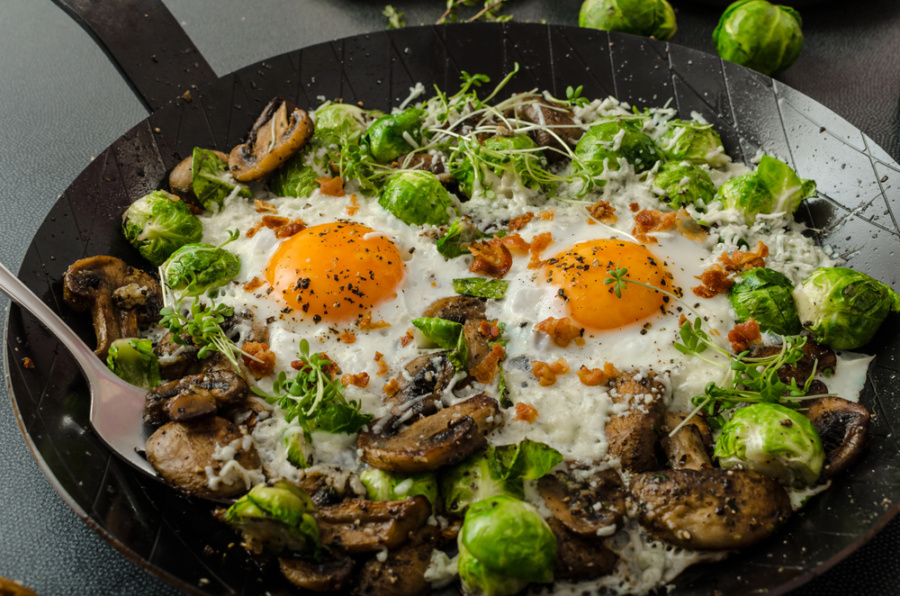 Ситний і незвичайний на смак омлет — корисний варіант сніданку навесні. Брюссельську капусту можна додавати до салатів, поєднувати з березневими гливами чи просто підсмажувати на гарнір.