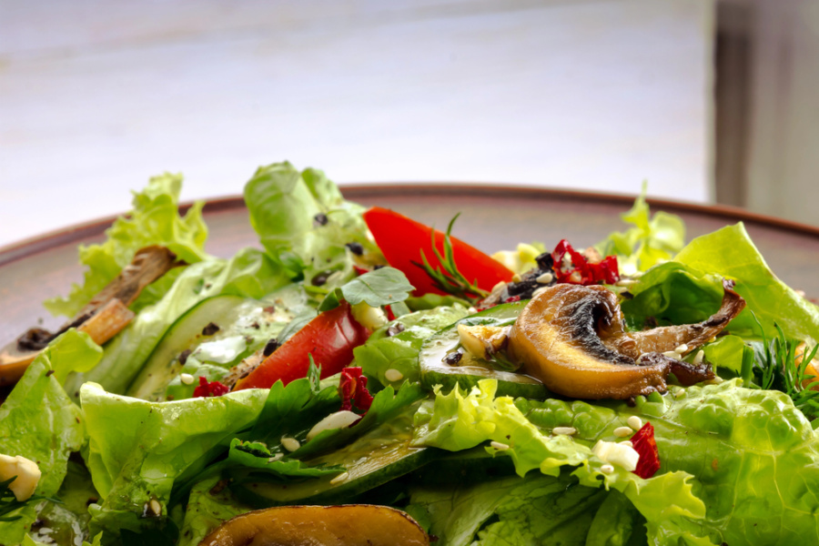 5. Салат із зеленню, солодким перцем і печерицями